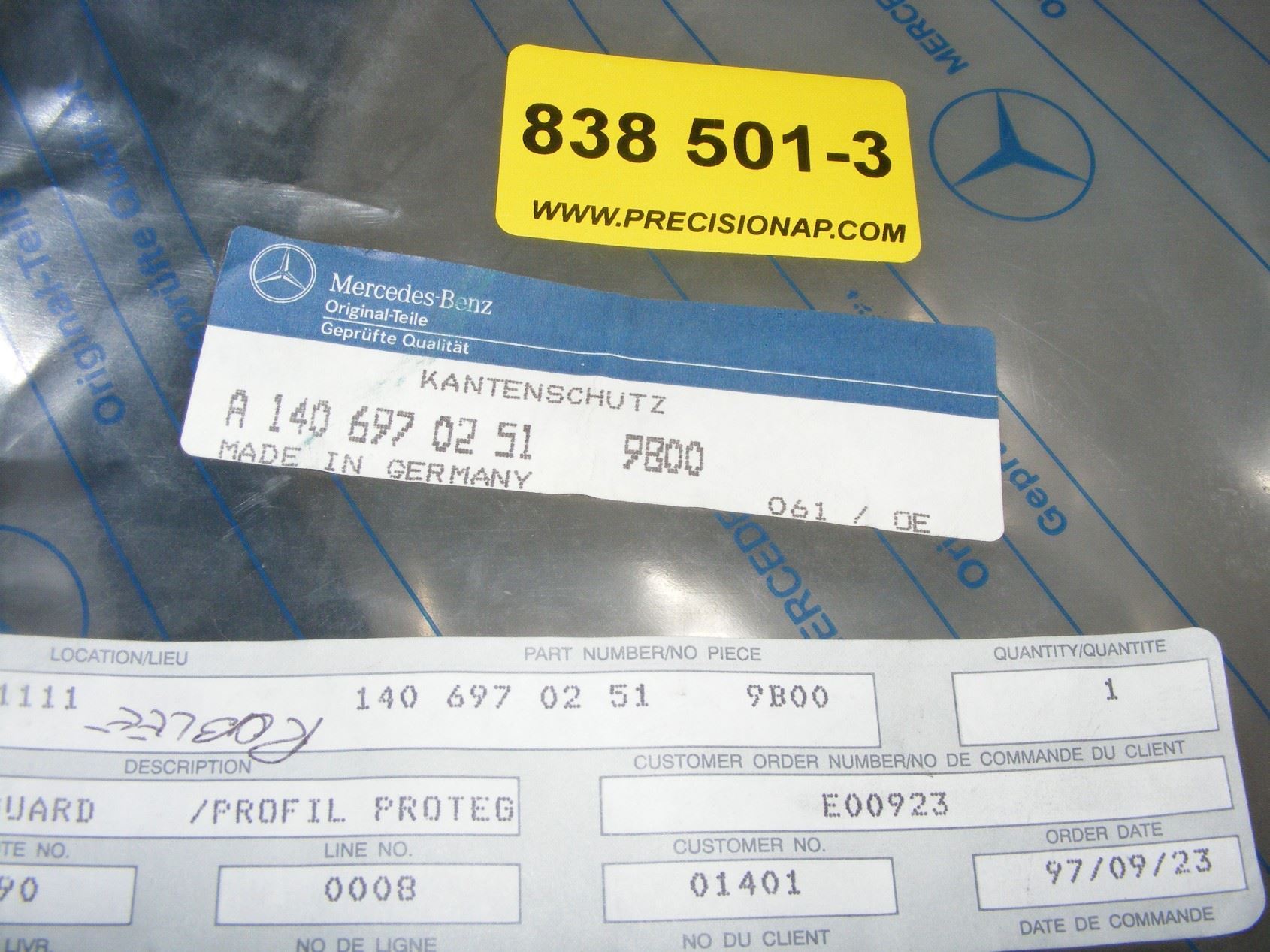 Mercedes W140 S320,S350,S420,S500,SL600 92-98 RIGHT FRONT DOOR EGDGE GUARD , BLACK