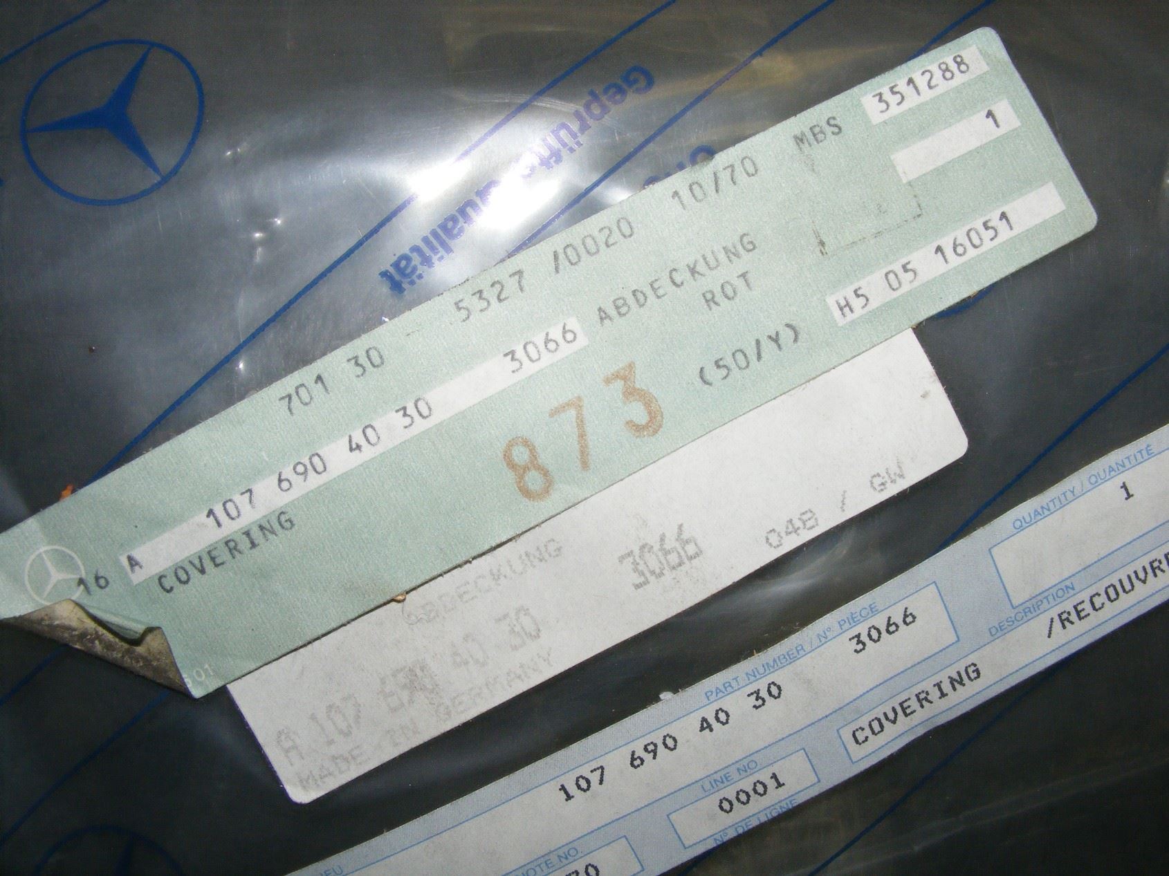 Mercedes 380sl,450sl left trunk inner fender cover 1076804030, red 3066